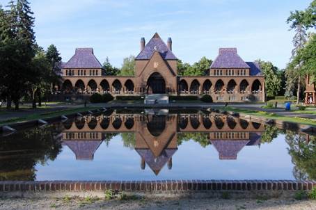 Die Trauerfeierhalle des Kommunalfriedhofs